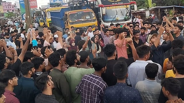 ৬ ঘণ্টা ধরে ঢাকা-বরিশাল মহাসড়ক অবরোধ করে রেখেছেন শিক্ষার্থীরা