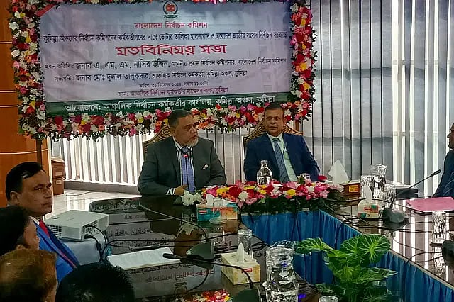 মঙ্গলবার সকালে কুমিল্লা আঞ্চলিক নির্বাচন কর্মকর্তার কার্যালয়ে মতবিনিময় সভায় সিইসি