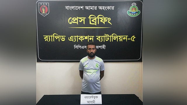 রাজশাহীতে ছেলেকে হত্যার ভয় দেখিয়ে এক গৃহবধূকে ধর্ষণ মামলার এক আসামিকে গ্রেফতার করেছে র‍্যাব। শুক্রবার (২৭ সেপ্টেম্বর) রাত ৮টার দিকে জেলার গোদাগাড়ী উপজেলার মহিষালবাড়ী বাজার থেকে আরিফুজ্জামান আরিফ (৩৪) নামের এই ব্যক্তিকে গ্রেফতার করা হয়।
