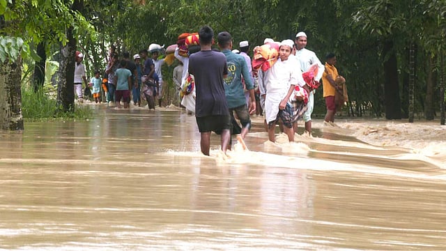 তিনদিন পানিবন্দি থেকে বাসিন্দারা ছুটছেন আশ্রয়ের খোঁজে। ছবি: সংগৃহীত