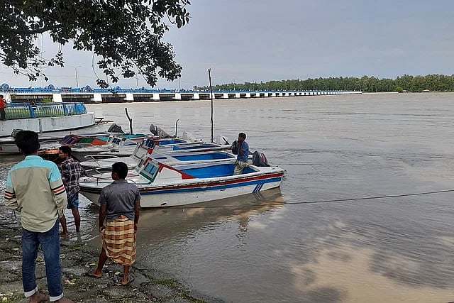 ভারী বর্ষণ ও উজানের ঢলে তিস্তা নদীর পানি বেড়েছে। শনিবার বিকেলে লালমনিরহাটের দোয়ানীতে তিস্তা ব্যারাজ পয়েন্ট এলাকায়। ছবি: সংগৃহীত