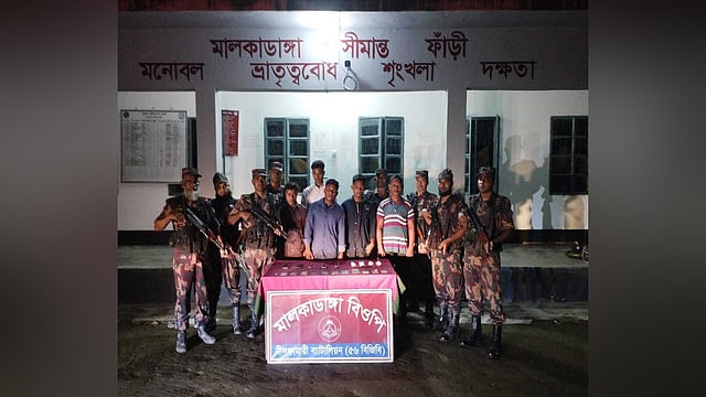 বিজিবির হাতে আটক ৫ বাংলাদেশি। ছবি: সংগৃহীত