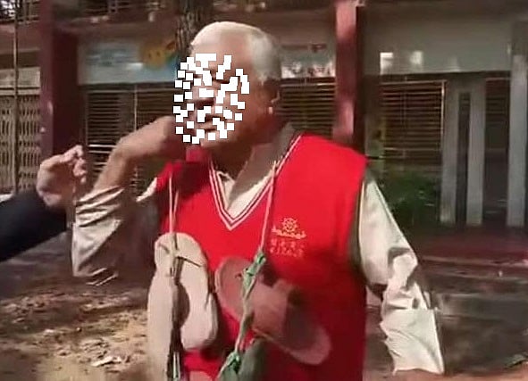 কুমিল্লার বীর মুক্তিযোদ্ধা আবদুল হাই কানুকে জুতার মালা পরিয়ে হেনস্তা। ছবি-সংগৃহিত।