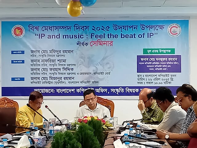 বিশ্ব মেধাসম্পদ দিবস ২০২৫ উপলক্ষে ঢাকার আগারগাঁওয়ে কপিরাইট ভবনে ‘আইপি অ্যান্ড মিউজিক: ফিল দ্য বিট অব আইপি’ শীর্ষক সেমিনার অনুষ্ঠিত হয়েছে। শনিবার সকালে অনুষ্ঠিত এই সেমিনারে প্রধান অতিথি হিসেবে উপস্থিত ছিলেন সংস্কৃতি বিষয়ক মন্ত্রণালয়ের সচিব মফিদুর রহমান।
