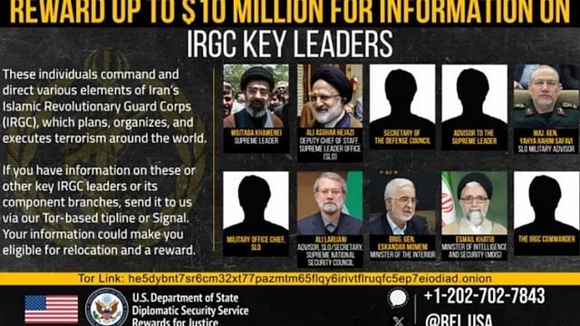 ইরানের নতুন সর্বোচ্চ নেতা আয়াতুল্লাহ মোজতবা খামেনিসহ দেশটির শীর্ষ সামরিক ও গোয়েন্দা কর্মকর্তাদের বিষয়ে সুনির্দিষ্ট তথ্যের জন্য ১ কোটি মার্কিন ডলার পর্যন্ত পুরস্কার ঘোষণা করেছে যুক্তরাষ্ট্র। দেশটির স্টেট ডিপার্টমেন্টের ওয়েবসাইটে প্রকাশিত তথ্য অনুযায়ী, ইরানের ইসলামি বিপ্লবী গার্ড কর্পসের (আইআরজিসি) সঙ্গে সংশ্লিষ্ট মোট ১০ জন কর্মকর্তাকে এই পুরস্কারের লক্ষ্যবস্তু করা হয়েছে।