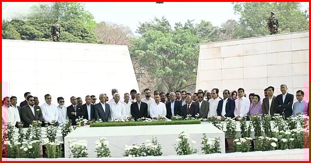 এর আগে বেলা ১১টার দিকে সাভারের জাতীয় স্মৃতিসৌধে মুক্তিযুদ্ধের শহিদদের প্রতি শ্রদ্ধা জানান নতুন প্রধানমন্ত্রী।