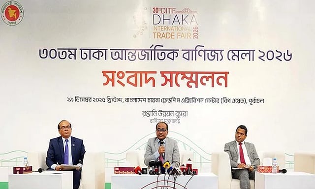 আজ বাংলাদেশ-চায়না ফ্রেন্ডশিপ এক্সিবিশন সেন্টারে ডিআইটিএফ-২০২৬ আয়োজন বিষয়ে সংবাদ সম্মেলনে এসব কথা জানান বাণিজ্য সচিব মাহবুবুর রহমান।
