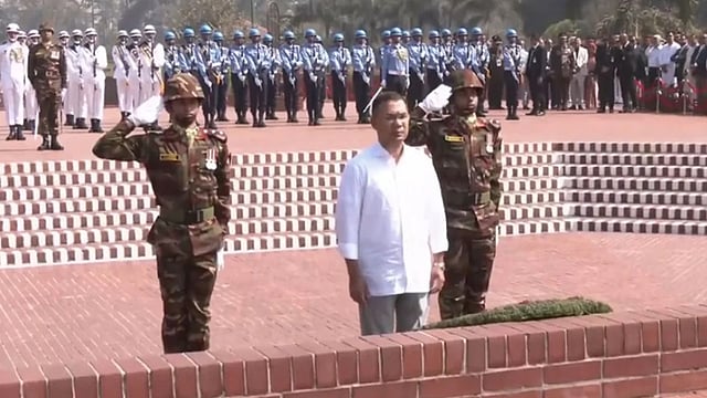 বুধবার (১৮ ফেব্রুয়ারি) বেলা ১১টার দিকে সাভারের জাতীয় স্মৃতিসৌধে শহীদ সমাধিতে ফুলেল শ্রদ্ধা জানান তিনি। পরে শ্রদ্ধা নিবেদন শেষে দাঁড়িয়ে এক মিনিট নীরবতা পালন করেন তিনি।