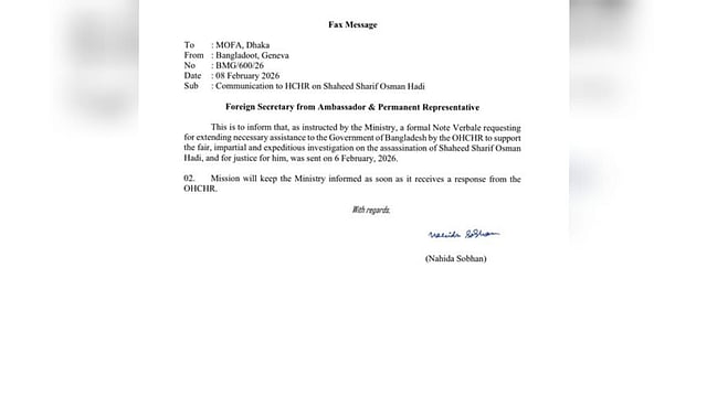 পররাষ্ট্র মন্ত্রণালয়ের নির্দেশনা অনুযায়ী জেনেভাস্থ বাংলাদেশ স্থায়ী মিশন গত ৬ ফেব্রুয়ারি ২০২৬ তারিখে OHCHR-এর কাছে একটি আনুষ্ঠানিক নোট ভারবাল (Note Verbale) প্রেরণ করেছে। উক্ত নোটে হত্যাকাণ্ডের তদন্তে প্রয়োজনীয় কারিগরি ও প্রাতিষ্ঠানিক সহায়তা প্রদানের জন্য জাতিসংঘের মানবাধিকার দপ্তরের সহযোগিতা কামনা করা হয়েছে।
