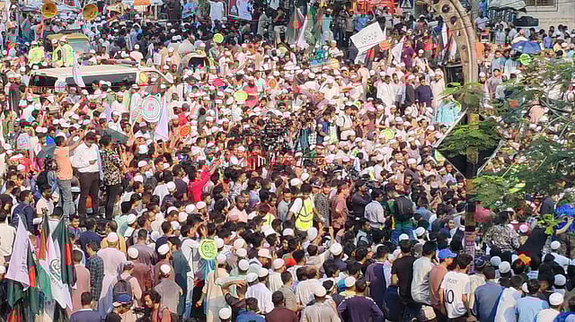 এদিকে, গণজমায়েতে যোগ দিতে শনিবার বিকেল সাড়ে ৩টার দিকে জাতীয় মসজিদ বায়তুল মোকাররমের উত্তর গেট থেকে গণমিছিল শুরু করেছে ইসলামী আন্দোলন বাংলাদেশ। গণমিছিলে নেতৃত্ব দিচ্ছেন দলটির মহাসচিব অধ্যক্ষ মাওলানা হাফেজ ইউনুছ আহমদ।