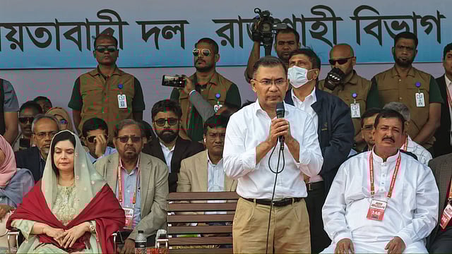 এর আগে দুপুর ১টা ৫৩ মিনিটে তারেক রহমান রাজশাহীর ঐতিহাসিক মাদ্রাসা মাঠে সমাবেশ মঞ্চে উপস্থিত হন। মঞ্চে তারেক রহমানের সাথে তার স্ত্রী জুবাইদা রহমানও ছিলেন।