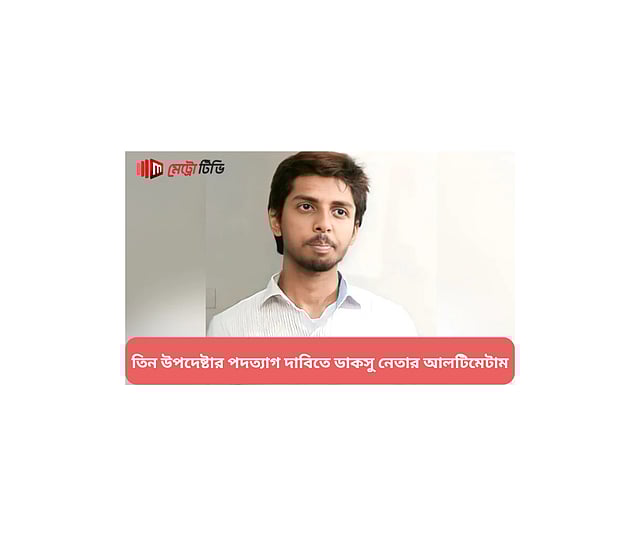 হাসিনাসহ সব খুনিদের ফিরিয়ে আনা ও আইনশৃঙ্খলা পরিস্থিতির দৃশ্যমান উন্নতি দেখাতে না পারলে দেশের ছাত্রজনতাকে সঙ্গে নিয়ে স্বরাষ্ট্র উপদেষ্টা, আইন উপদেষ্টা ও পররাষ্ট্র উপদেষ্টার পদত্যাগের দাবিতে দুর্বার আন্দোলন গড়ে তোলা হবে বলে আলটিমেটাম দিয়েছেন ডাকসুর সাহিত্য ও সাংস্কৃতিক সম্পাদক মুসাদ্দিক আলী ইবনে মোহাম্মদ।