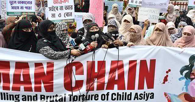 নির্বাচন-পরবর্তী সময়ে দেশের বিভিন্ন স্থানে নারী ও শিশুদের ওপর সহিংসতা এবং হত্যার প্রতিবাদে রাজধানীর জাতীয় প্রেসক্লাবের সামনে মানববন্ধন করেছে বাংলাদেশ জামায়াতে ইসলামীর মহিলা বিভাগ।