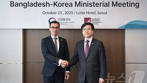 বৃহস্পতিবার (২৩ অক্টোবর) সিউলে এক বৈঠকে মিলিত হন বাংলাদেশ বিনিয়োগ উন্নয়ন কর্তৃপক্ষের (বিডা) নির্বাহী চেয়ারম্যান আশিক চৌধুরী এবং দক্ষিণ কোরিয়ার বাণিজ্যমন্ত্রী ইয়ো হান-কু।