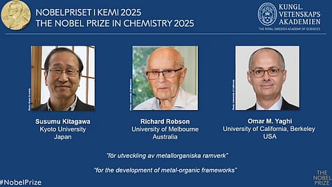 এ বছর রসায়নে নোবেল পুরস্কার জিতেছেন তিন বিজ্ঞানী। তারা হলেন জাপানের সুসুমু কিতাগাওয়া, অস্ট্রেলিয়ার রিচার্ড রবসন এবং যুক্তরাষ্ট্রের ওমর এম. ইয়াগি। ধাতু–জৈব কাঠামো উদ্ভাবনের জন্য যৌথভাবে এ পুরস্কার পেয়েছেন তারা।